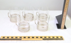 Iittala Paula varma dryckesglas med metallhållare, designade av Jorma Vennola.