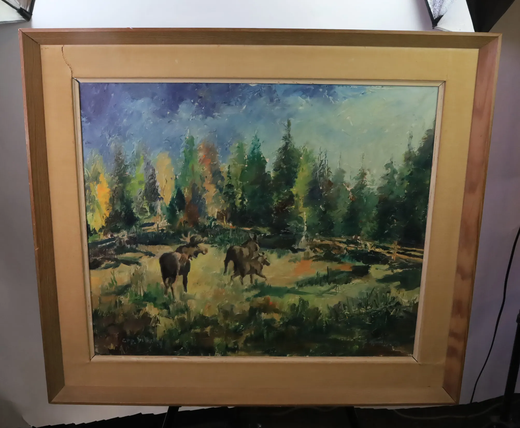 Älgtavla olja på pannå, signerad