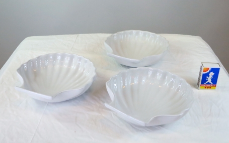 2262. 3 st vita snäckskalsformade skålar