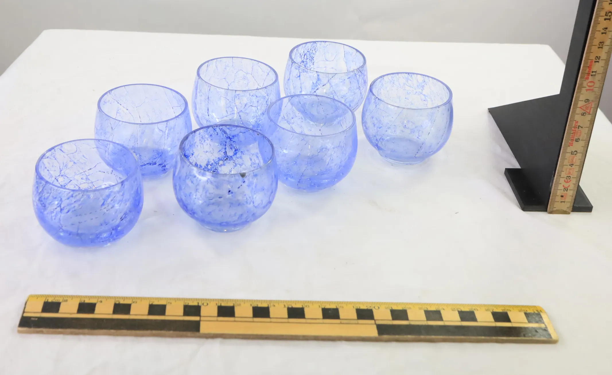 7 blå likörglas
