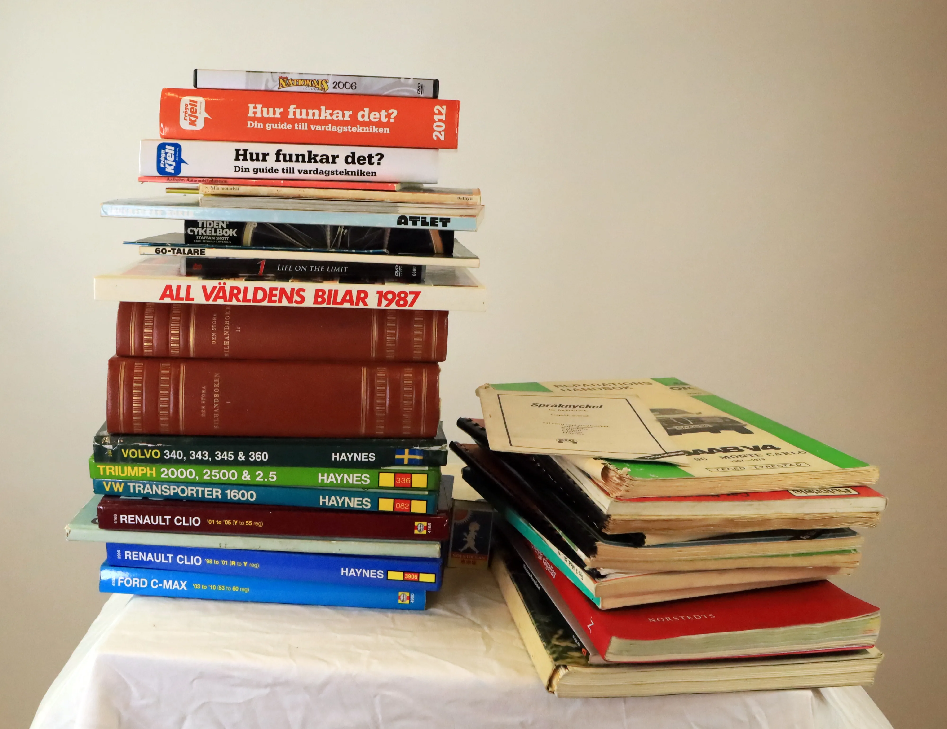 Mängd böcker om bilar, hur man lagar dem.