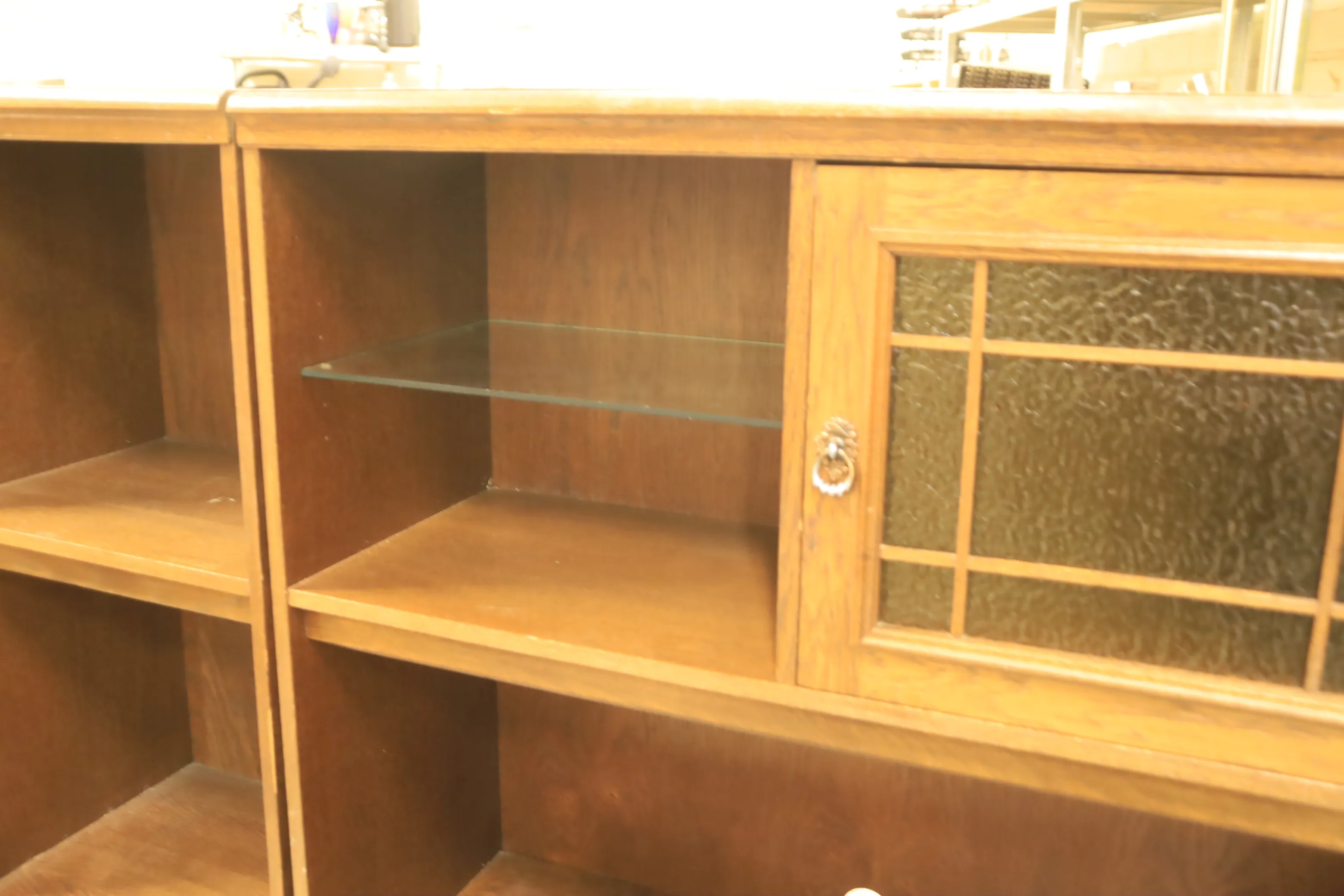 Bohylla 60 - 70 tal i tre sektioner, 251 cm lång x 40 cm djup 148 cm hög (hela), sido sektionerna är 100 cm långa och mitten sektionen är 51 cm.