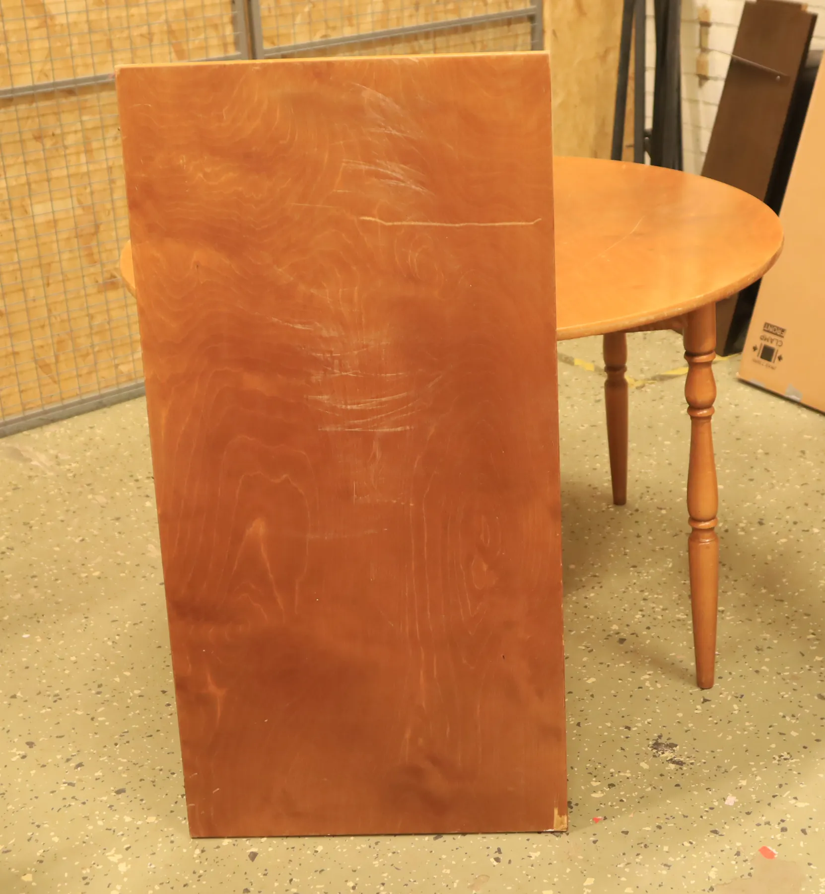 Bord med iläggskiva, har en del repor, 110cm i diameter 73 cm högt , iläggskivan är 55 cm bred.