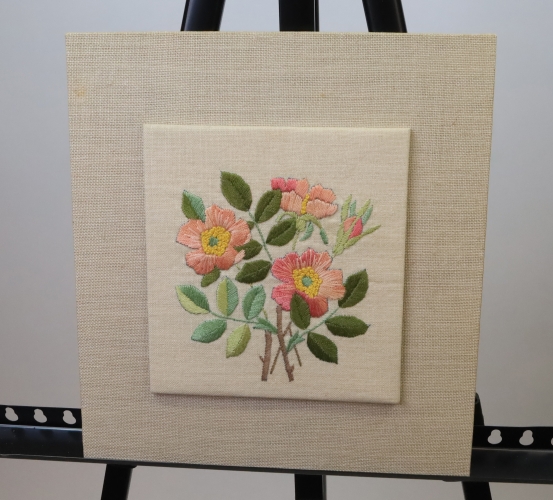 Broderad blomstertavla 25 x 27 cm