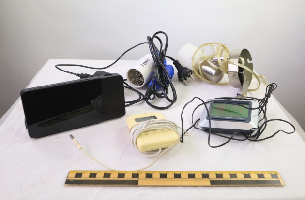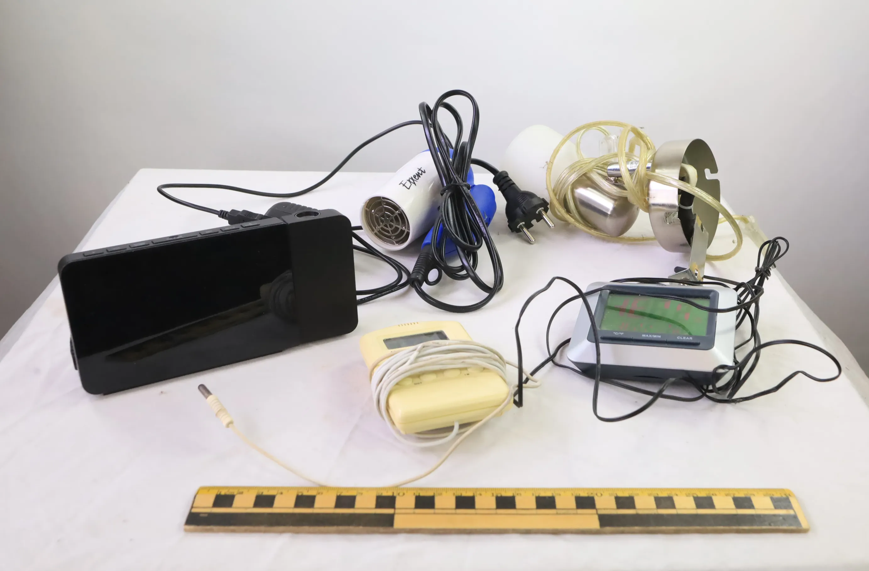 Klockradio från claes olsson, termometrar, lampa, hårtork