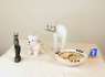 Diverse porslin och en plåt katt