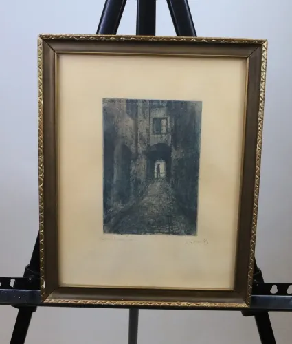 Etsning Kolmätaregränd, signerad 30 x 24 cm