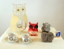 Figuriner, tomekoppar, ena ugglan är gjord av B.Wall keramiker från Trosa.