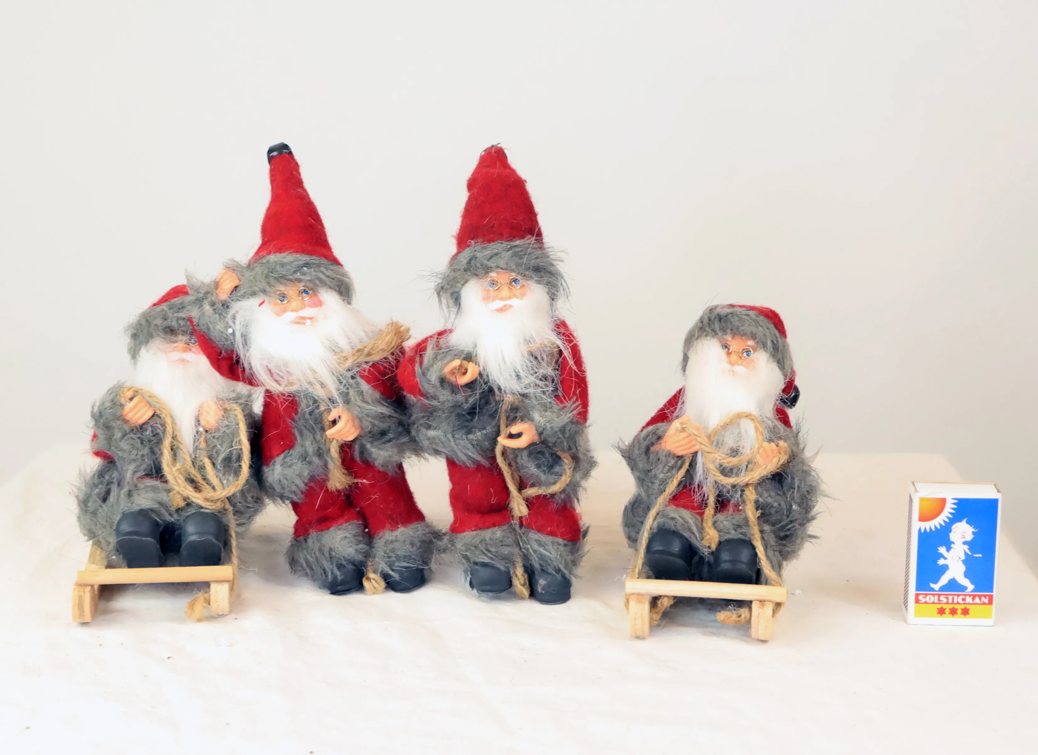 Fyra mindre tomtar i tyg och porslin