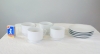 Fyra vita koppar med fat