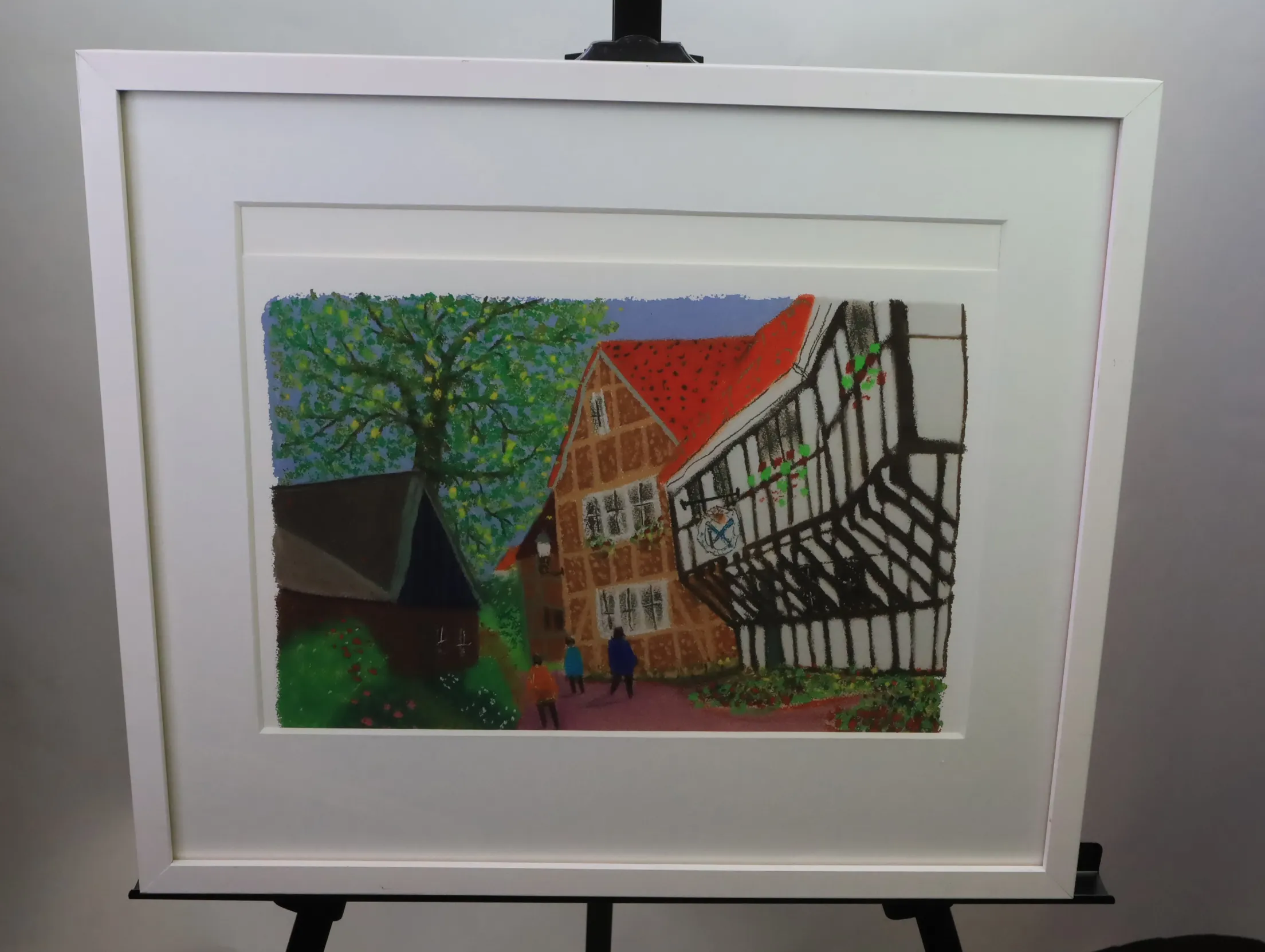 Gata med trävirkeshus 42 x  37 cm