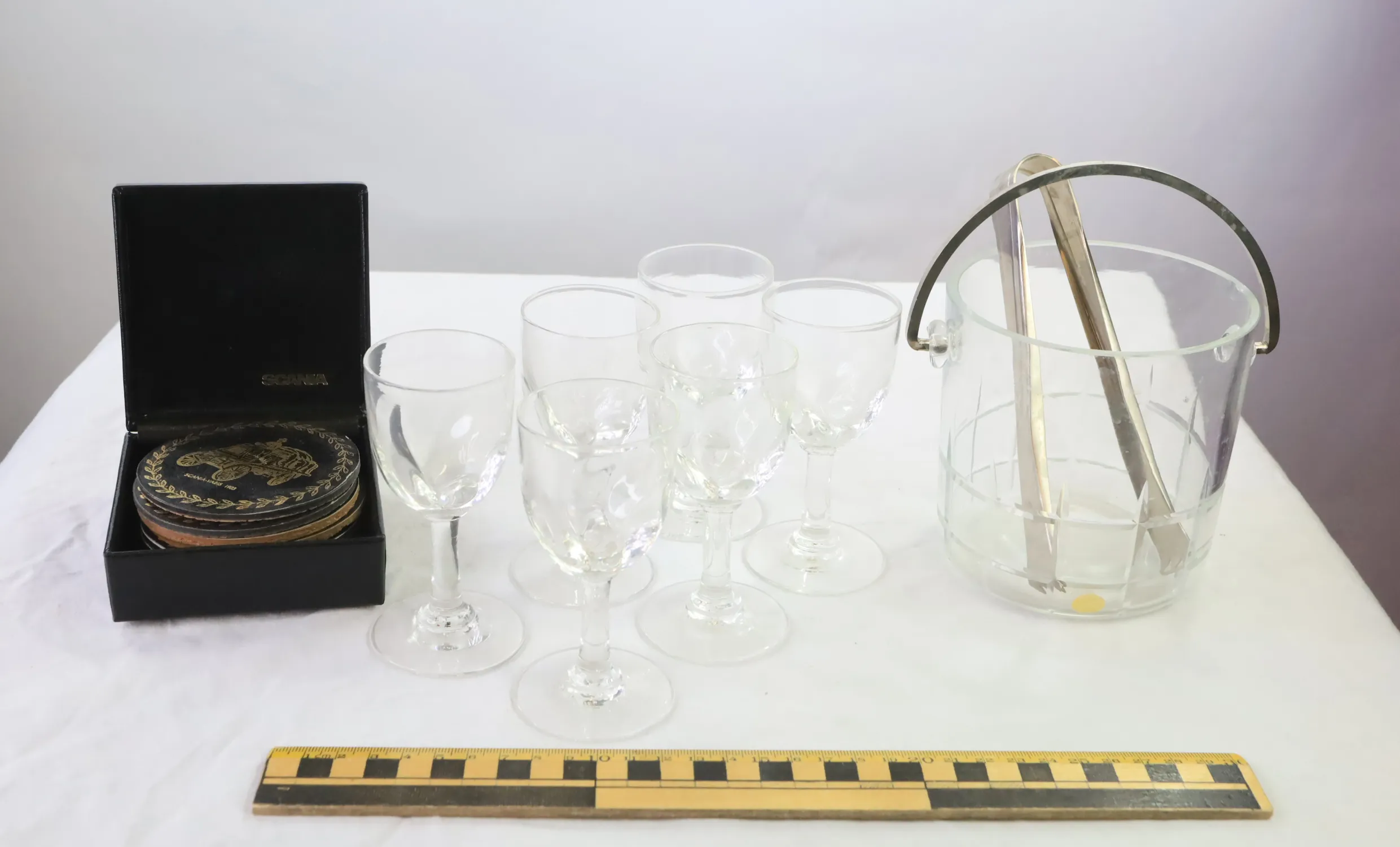 Glas, Ishink och underlägg, ett av glasen har nagg på foten