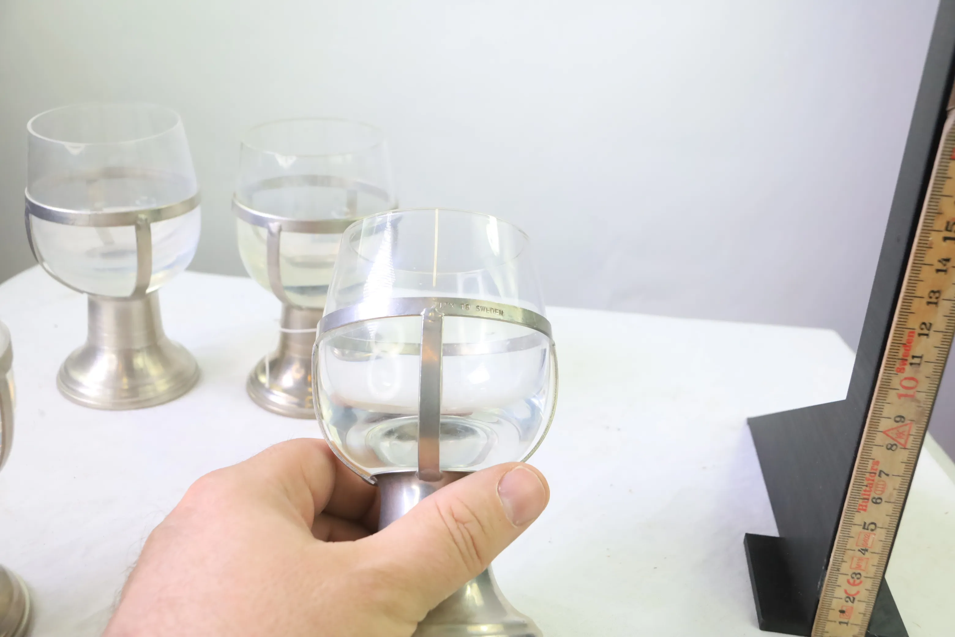 Glas med tennhållare