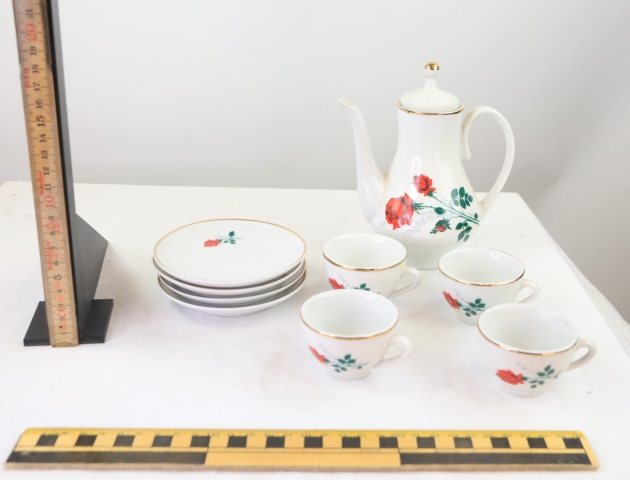 8145. Kaffekanna med fat och koppar