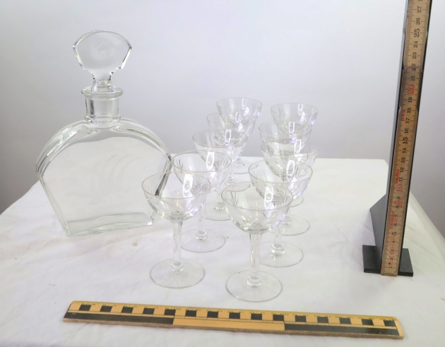 Karaff i slipat glas med 10 likörglas