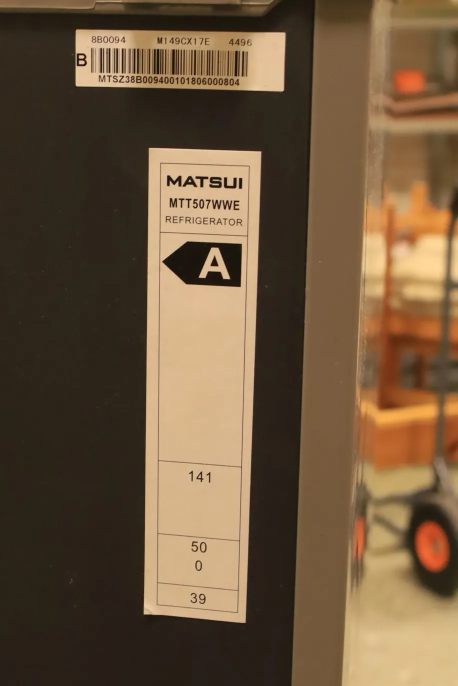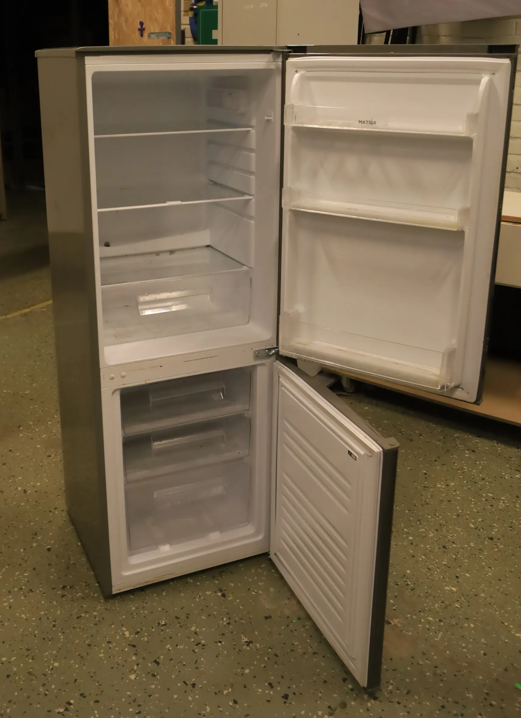 Kylskåp och frys, Matsui borstat stål look 53 cm bred, 51 cm djup, 150 cm hög, testad