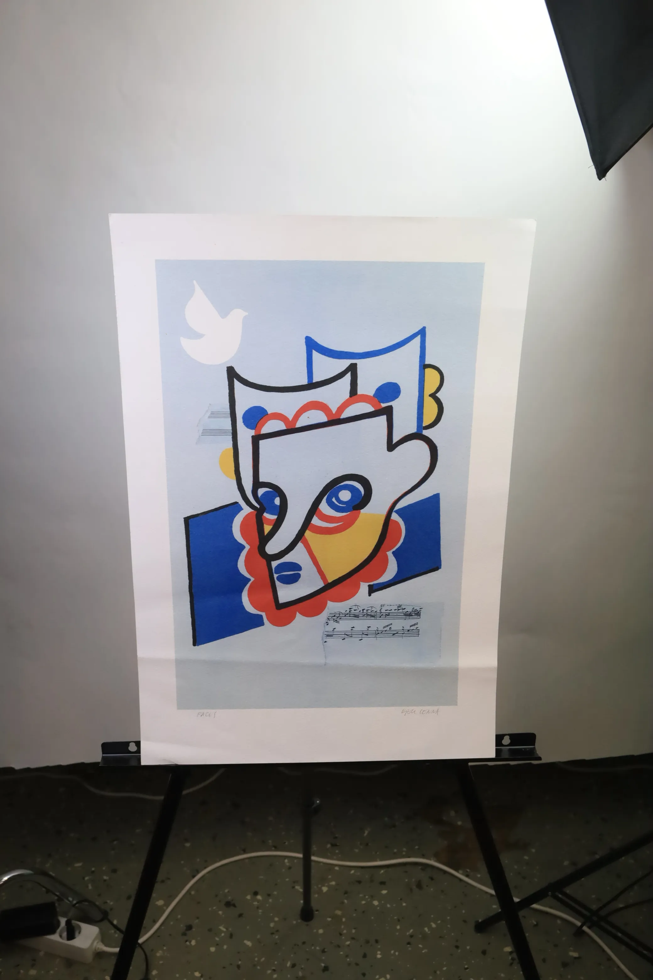 9854. Litografi oramad Faces Kjell Lennå