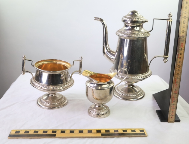 Metall kaffekanna och bägare