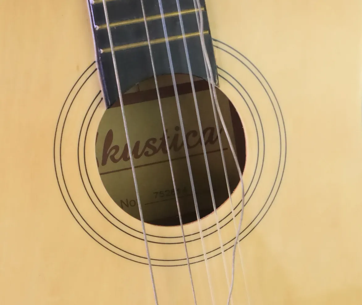Mindre gitarr Akustica, har slitage på backsidan