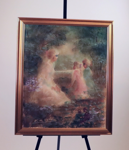 Målning kvinna och barn Walter du Halde, svensk bildkonstnär född i Chile 1919. 58 x 69 cm