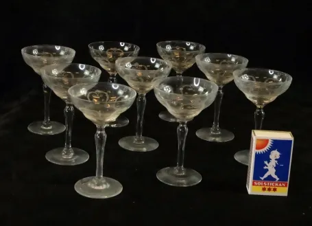 Nio likörglas med slipad dekor