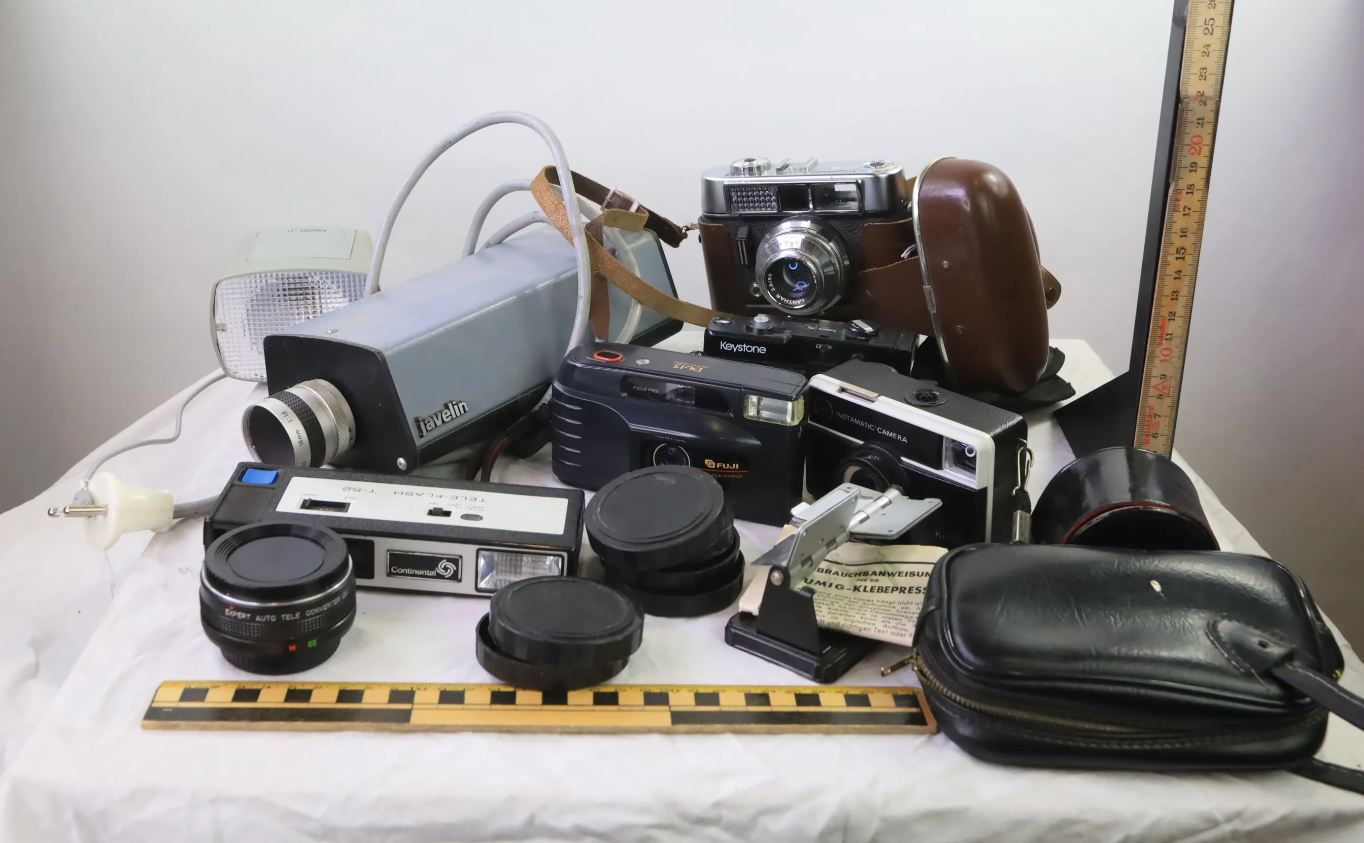 Parti äldre kameror och blixtar