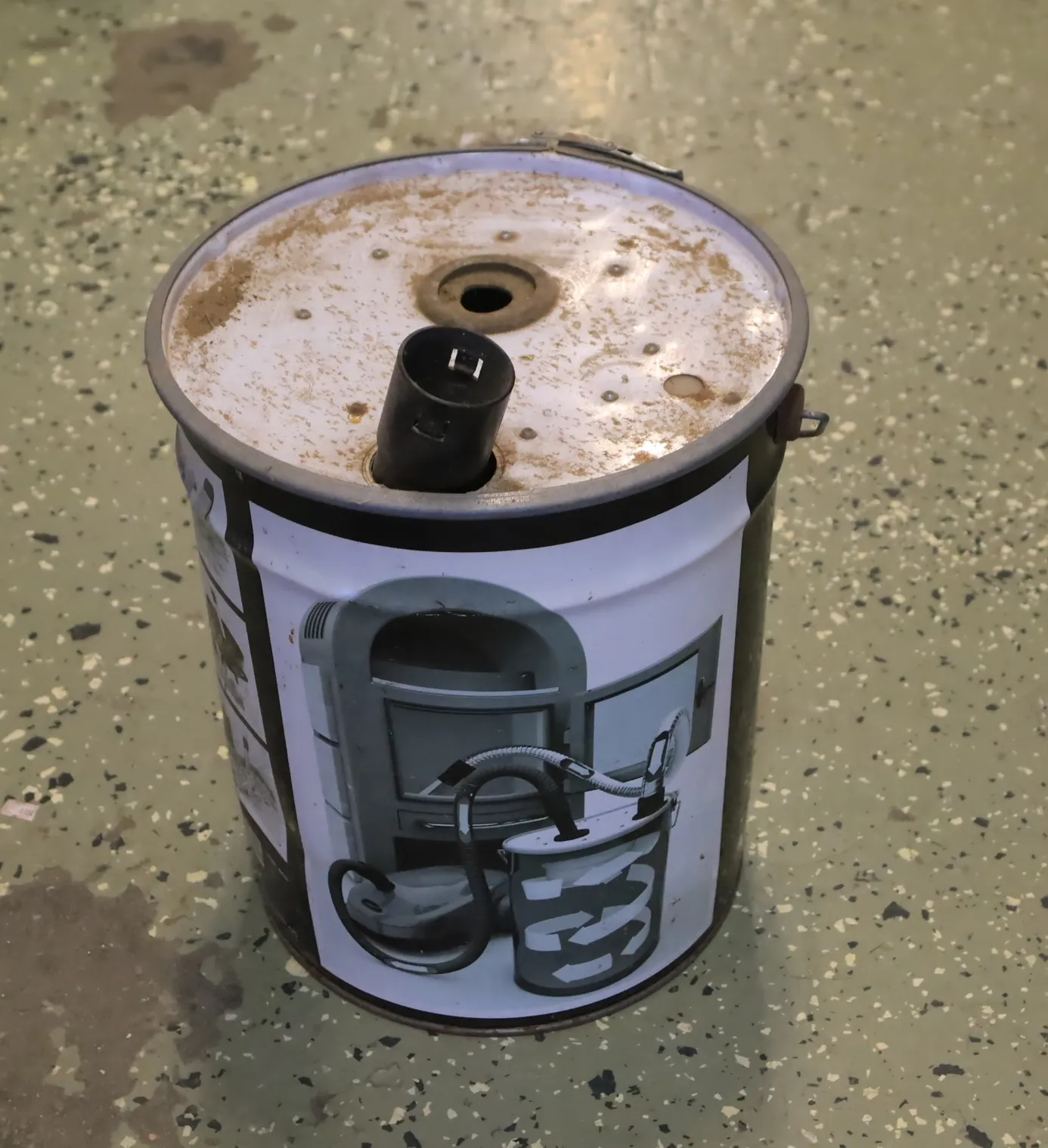 Plåtkärl för att suga upp aska med dammsugare