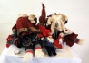 Samling tomtar i tyg i varierande storlekar, cirka 10 stycken.