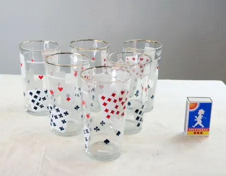 1813. Sex glas med kortmotiv