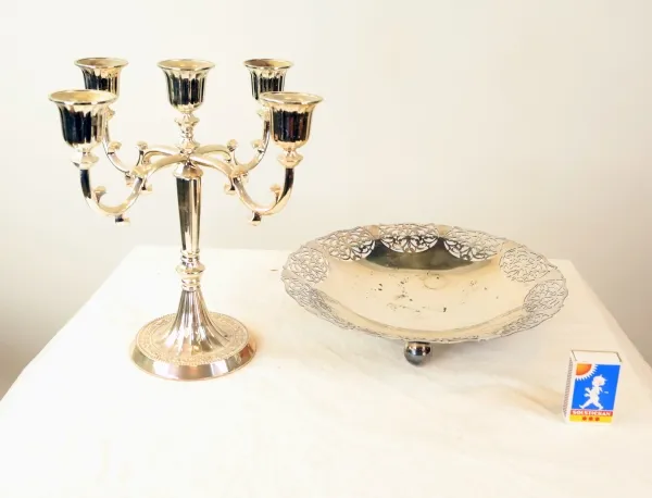4604. Skål och kandelaber