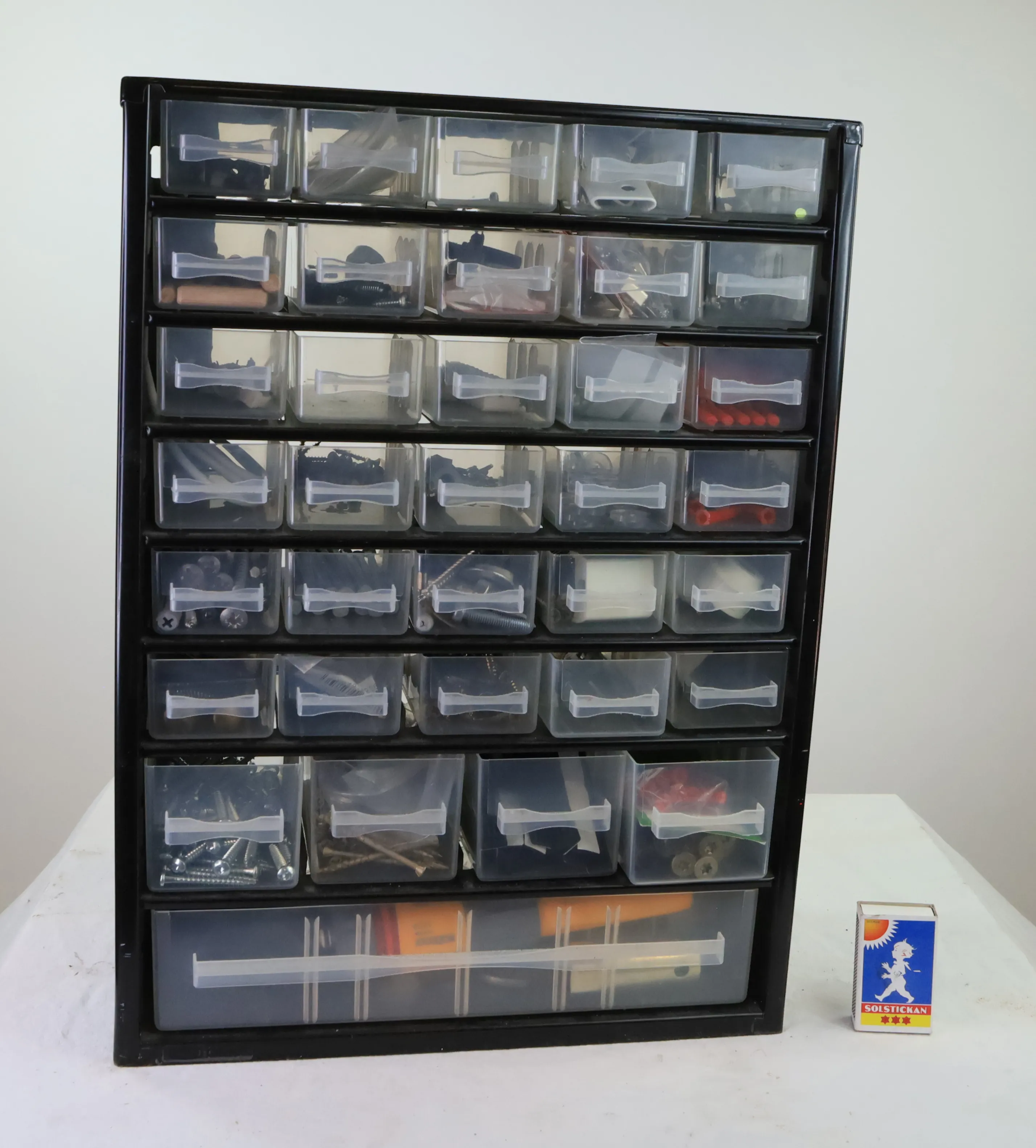 Sortimentskåp, fylld med delar