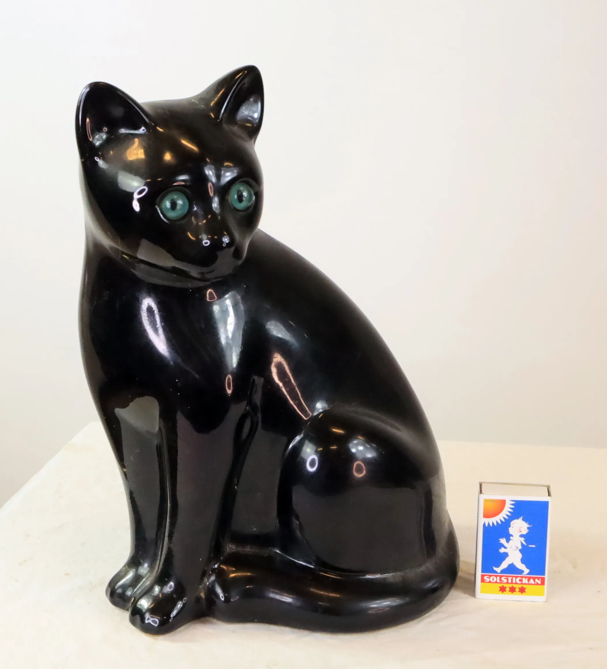 2916. Större kattfigurin, porslin, svart, Sia, Elfa, Portugal