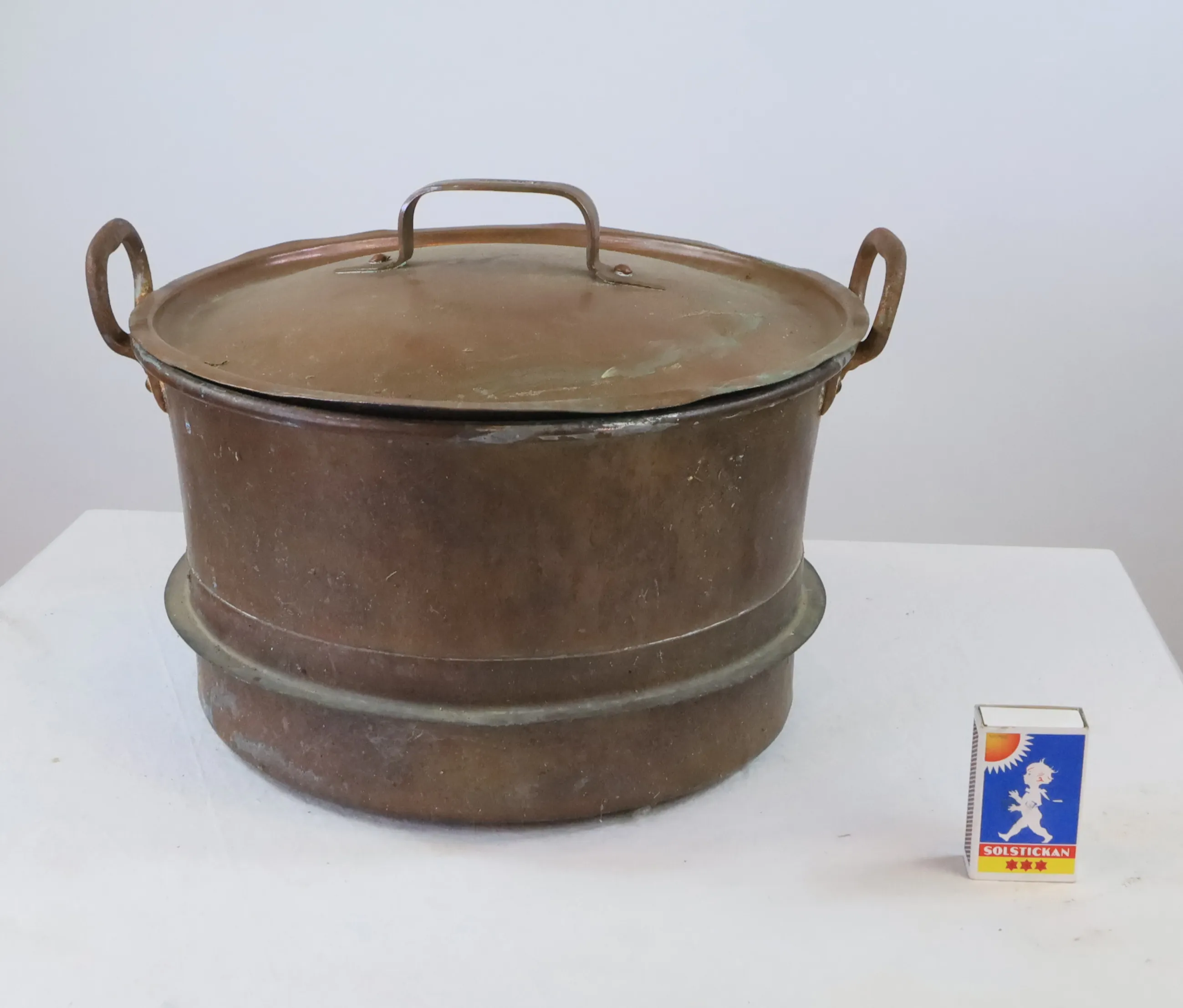 Större kopparkittel med lock