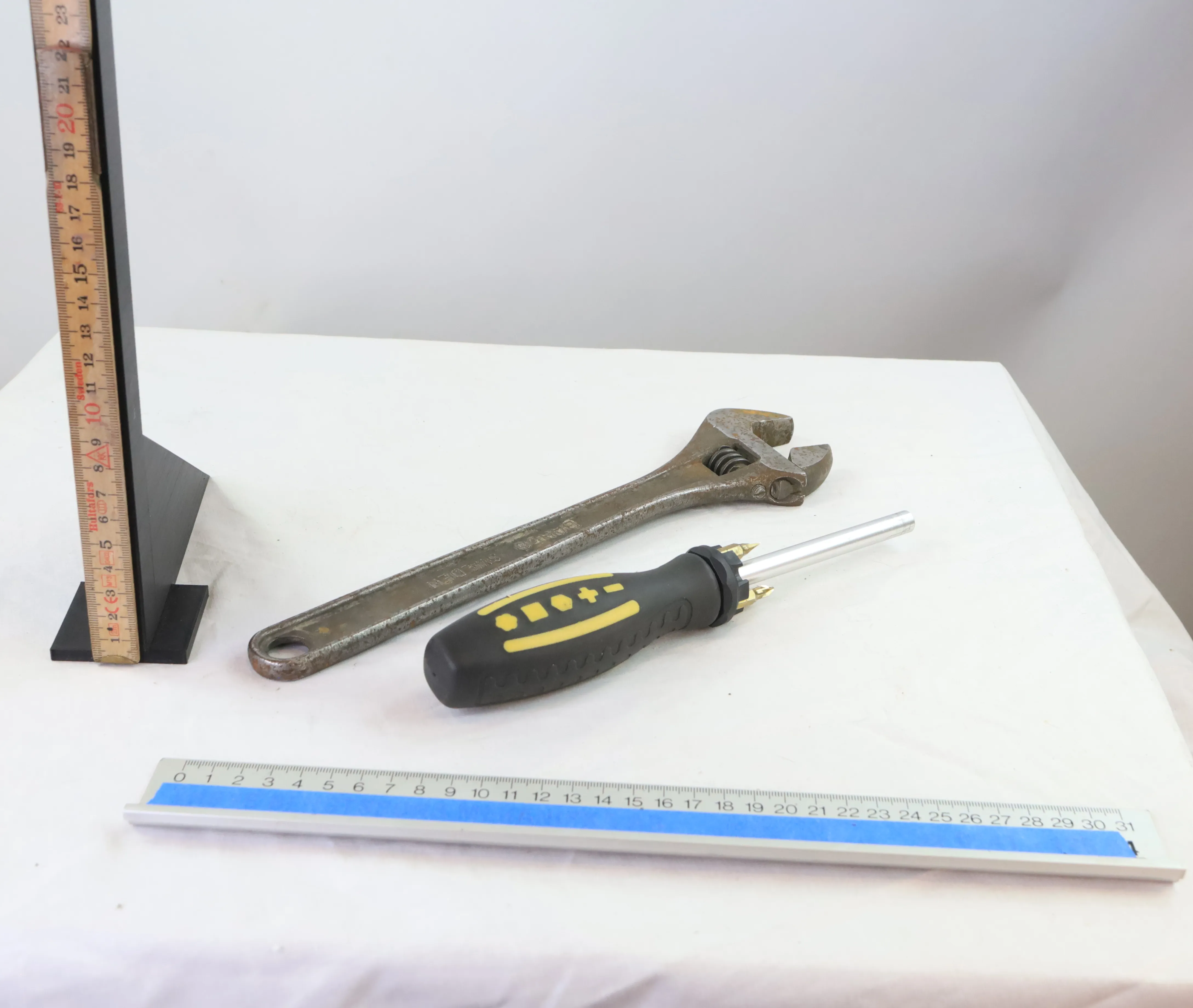 Större skifnyckel och skruvmejsel