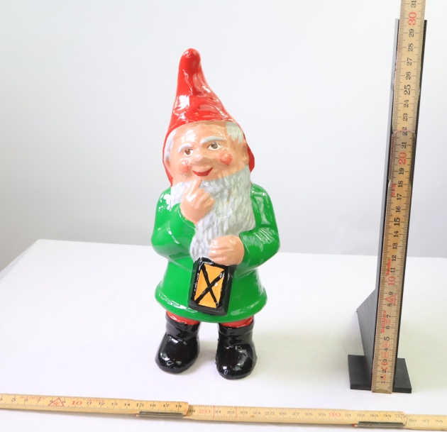 Större tomte med lykta, har lite färgbortfall