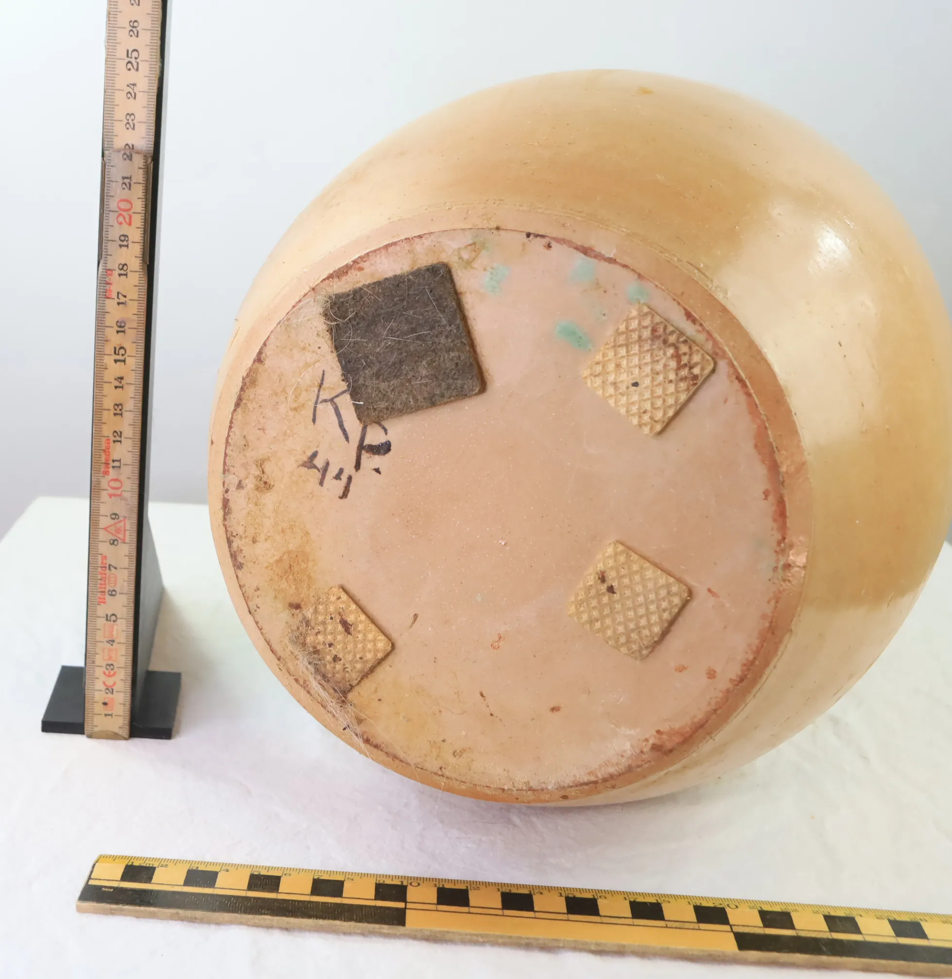 Större vas med utstickande motiv, sign KP 44, har ett litet nagg