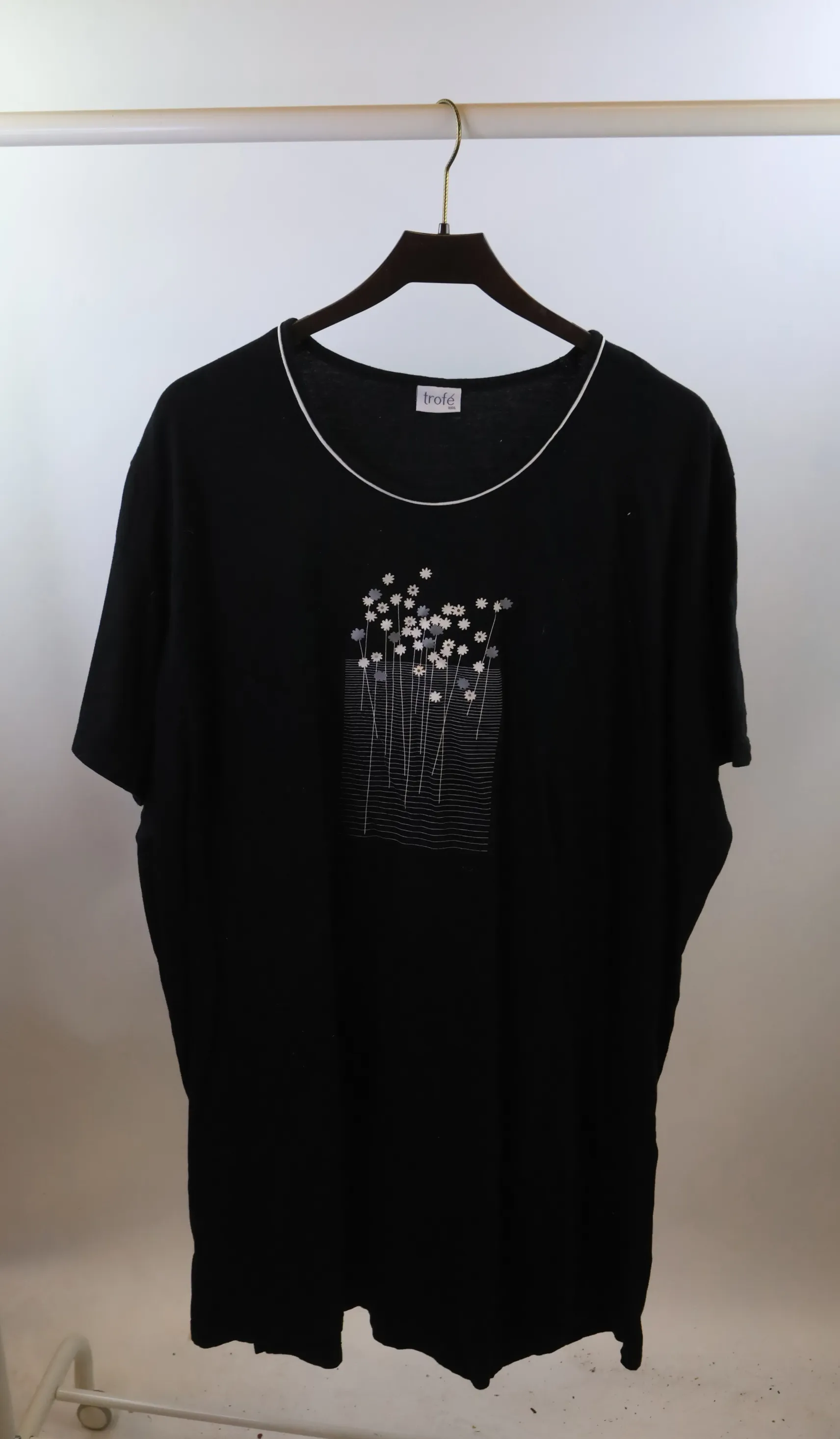 7718. Svart tröja med blommor Trofe XXL