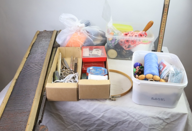 10037. Sysaker, nålar, knappar saxar