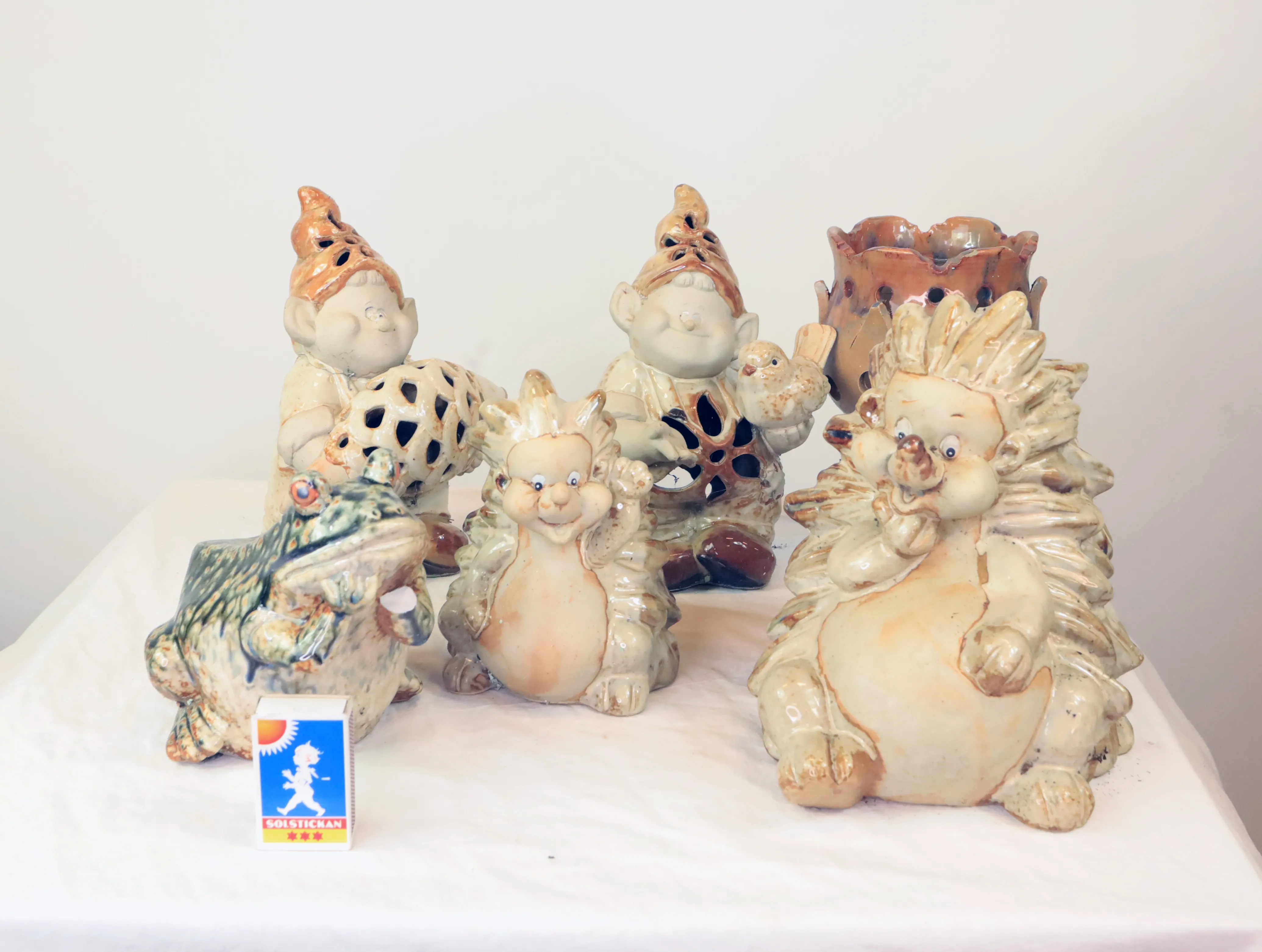 Trädgårdsfiguerer i keramik, flera har skador
