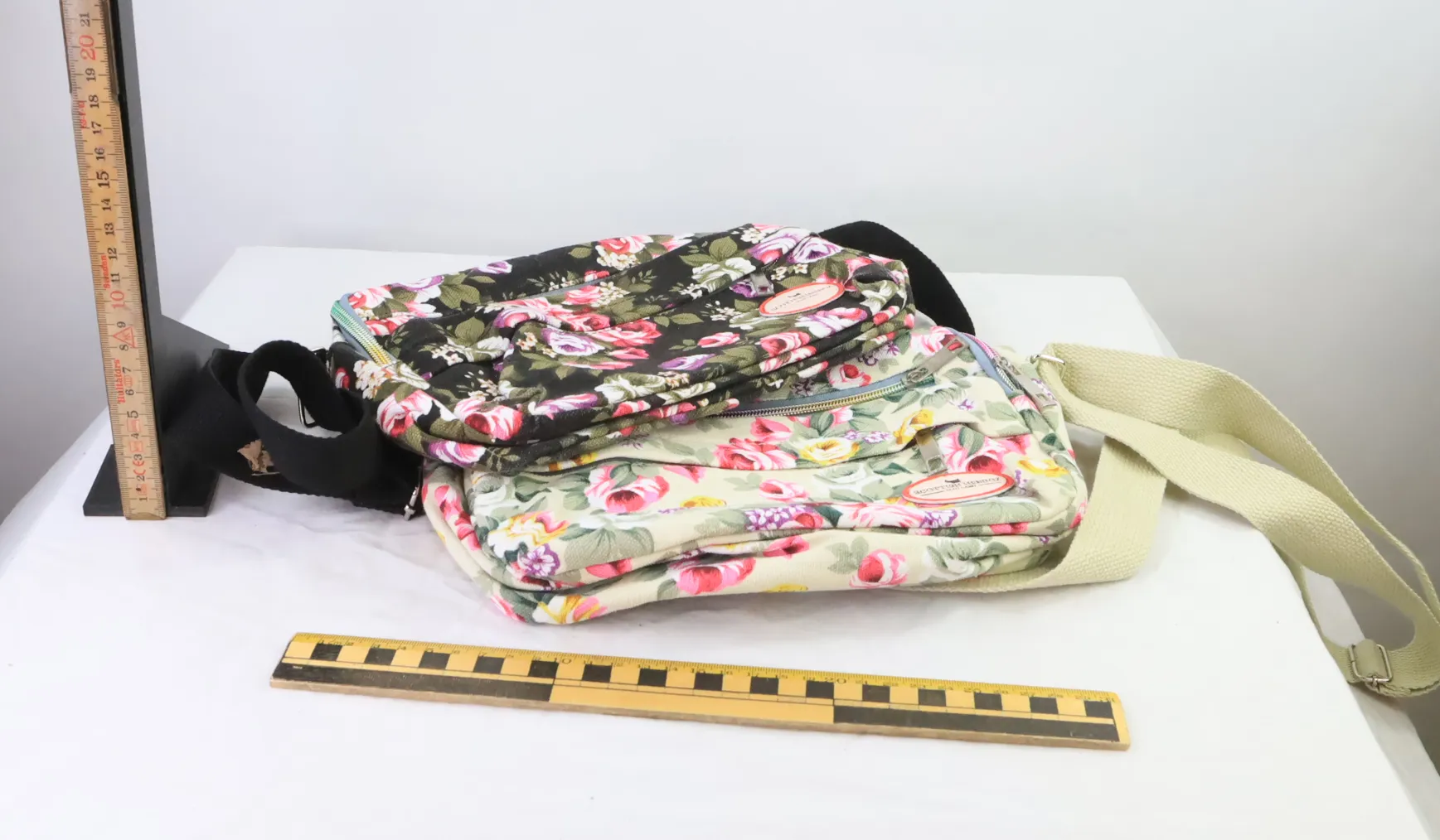 9021. Två blommiga handväskor