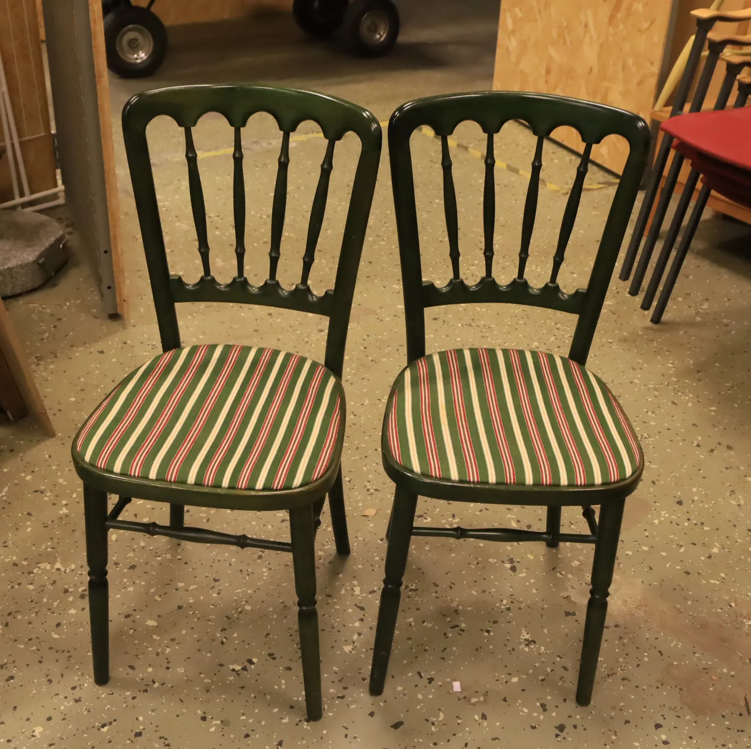 9618. Två gröna pinnstolar