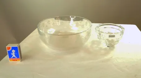 Glasskål med franska liljor och en skål från kosta boda