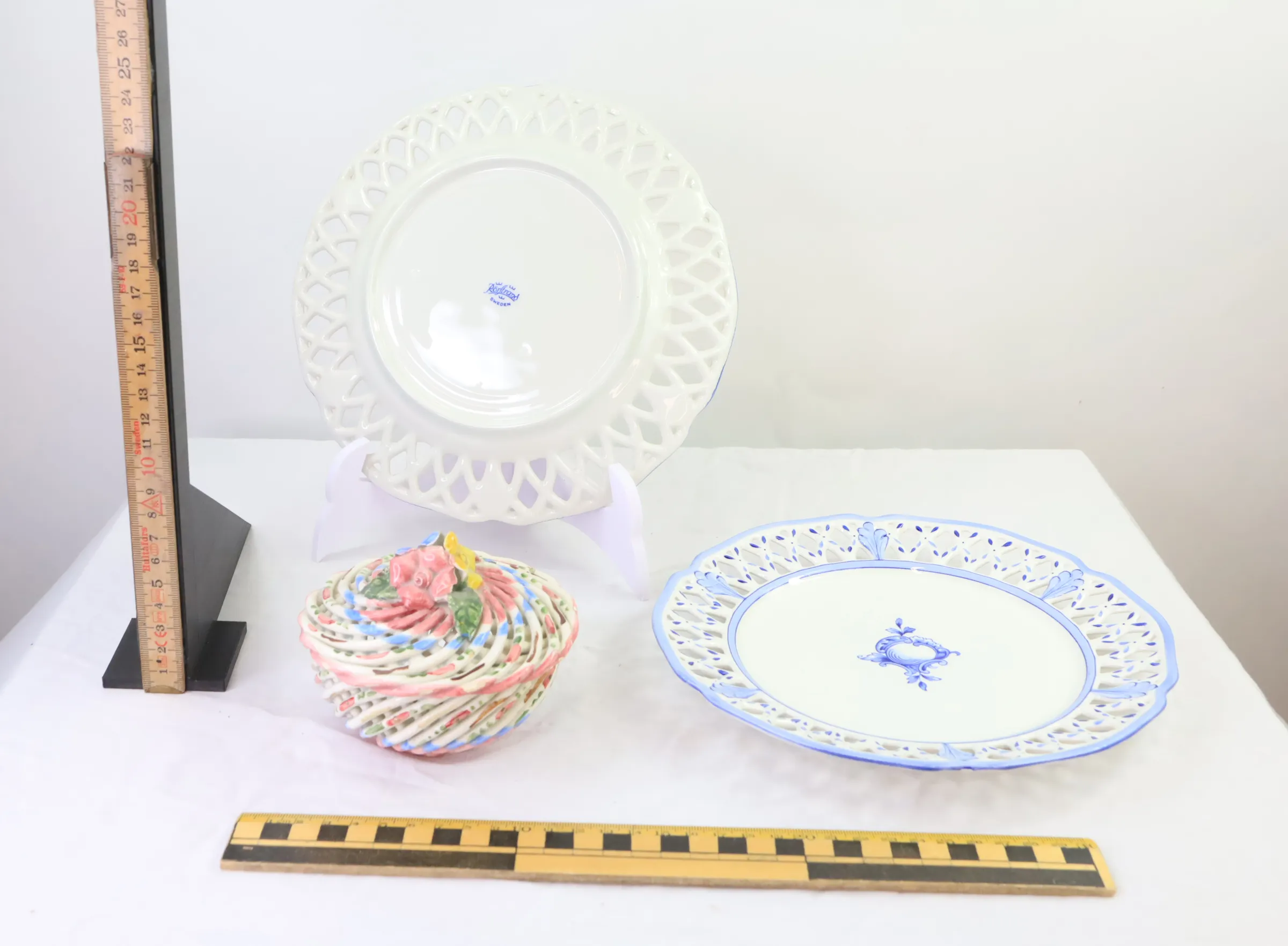 8983. Två tallrikar gallerporslin rörstrand och skål