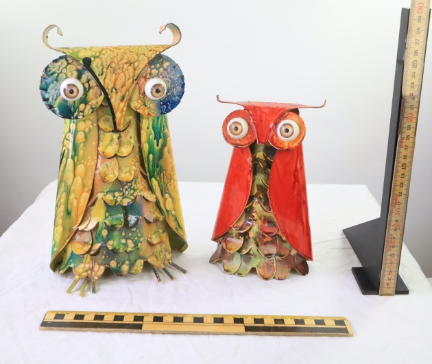 Två ugglor i metall