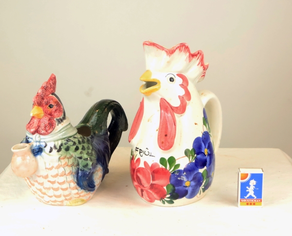 3170. Två kannor i form av tuppar