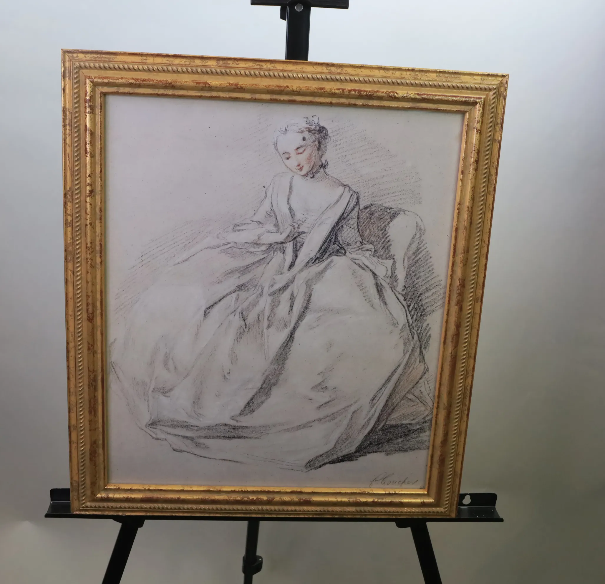 Ung dam som ser på sin ring, tryck 58 X 45 cm