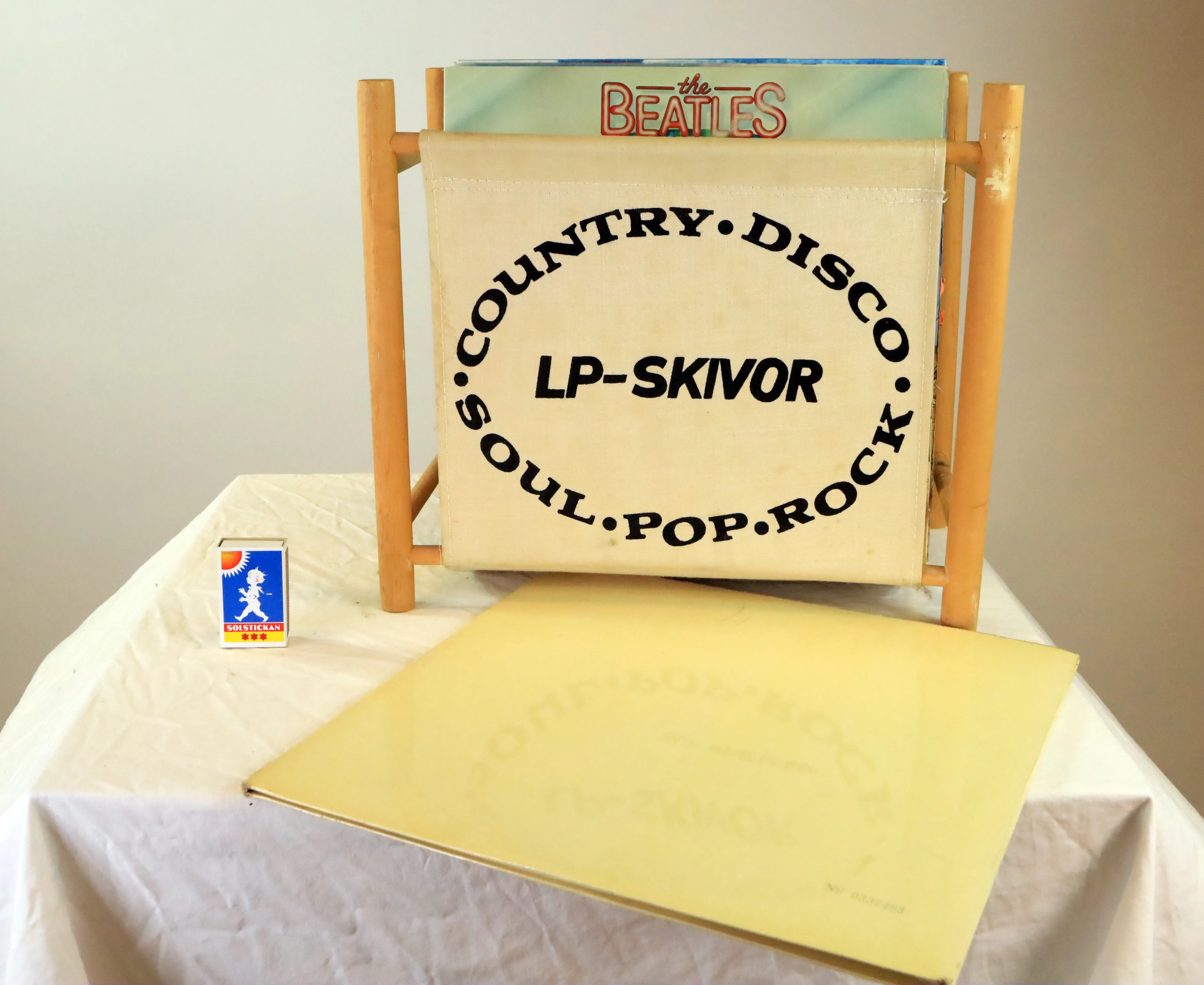 Vinylsamlare, med några Beatles album, bland annat det vita nummrerat