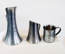 3 tennföremål, vinkanna, kanna, tennstop. Scandi Tenn och Bränn Tenn