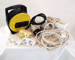 Låda med diverse elprylar