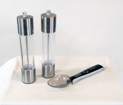Salt och pepparkvarnar. Digital våg i form av en sked